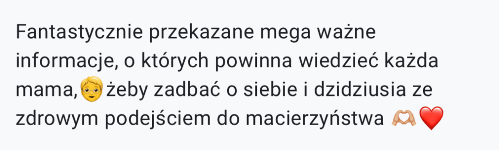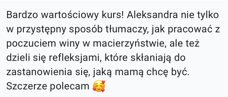 czujesz się spełniona jako mama, jesteś obecna. Potrafisz nawigować swoimi emocjami, stawiać granice, działać w zgodzie z wartościami i dzięki temu tworzyć wspierające środowisko dla dziecka. Te umiejętności są dla Ciebie dostępne i mogą pomóc w tworzeniu pięknej relacji ze swoim dzieckiem!